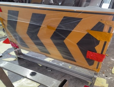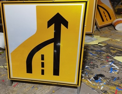 施工标志属交通警示标志的一种,放置在施工前面合适位置,用以告示路人前方施工,为了安全,要减速慢行或绕行,以减少安全事故的发生。